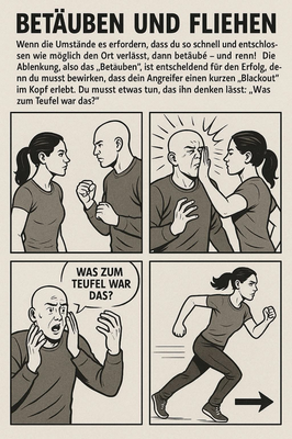 Das Prinzip „Stun and Run“ (Betäuben und fliehen) ist eine Selbstschutzstrategie, die auf Schnelligkeit und Überraschung setzt.